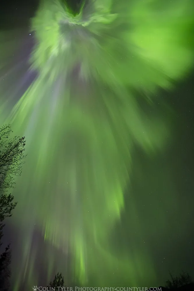 Aurora borealis coronal burst over the Chugach Mountains, Eagle River Nature Center