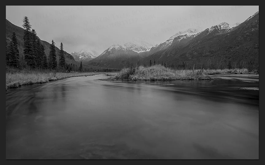 After nearly three weeks of closure, the Rodak Nature Trail was reopened today by Chugach State Park. It was a blustery evening with rainy weather making its way down the valley yet beautiful in a monochromatic way, and always a good place to clear my mind, breathe and create. I’ve used this little hiatus to catch up on a bit of editing as well as process last summer’s salmon, but I truly missed this scene and starting my days here.