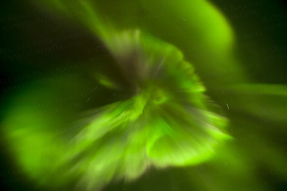 No image can convey the experience of witnessing the aurora borealis firsthand, but I hope this helps put into perspective just how intense the display was this past Saturday morning. This was taken with a wide-angle lens; the view is roughly equivalent to the human eye. Imagine looking directly overhead and seeing this across the entire sky, the lights converging into a corona directly over Polaris, the North Star, and shooting literally hundreds of miles into the atmosphere.