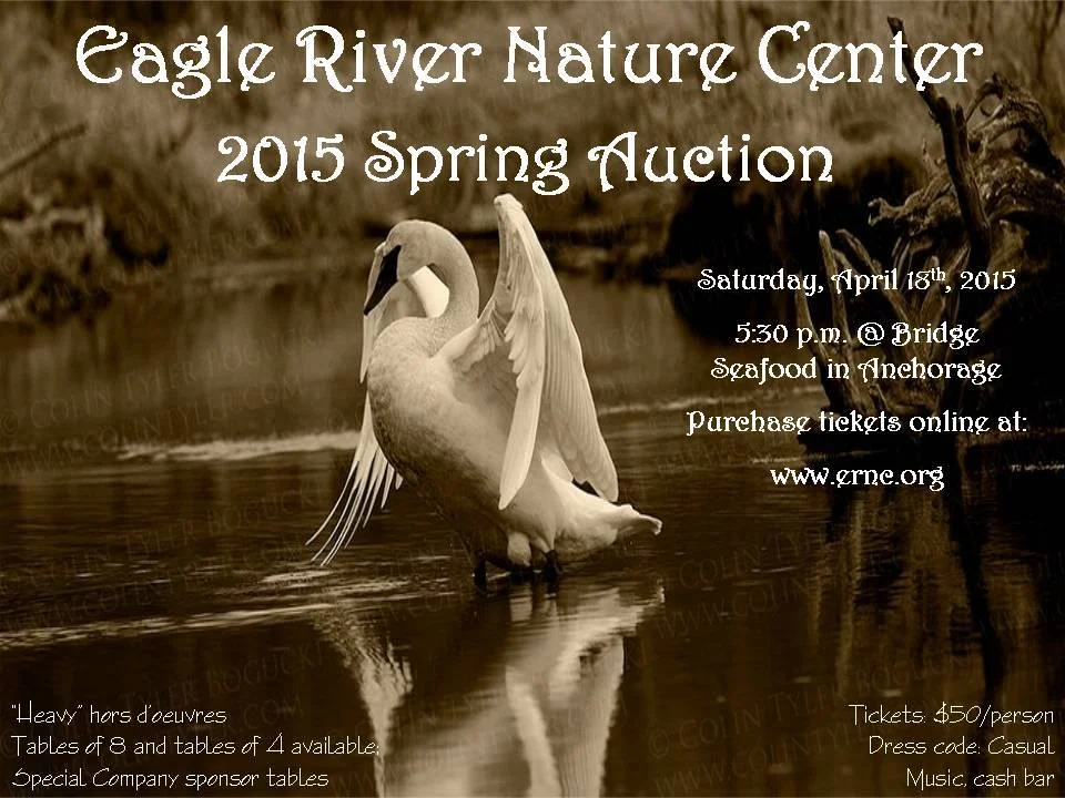 If you are looking for something to do this Saturday evening, please consider attending the Eagle River Nature Center's 2015 Spring Auction. There are a few tickets left for the event, which will be held at Bridge Seafood in Anchorage. I am donating three 24x36" canvas prints for the silent auction and also a private, six-hour instructional photo excursion at the Nature Center for up to two people, including a gourmet lunch, which will be in the live auction. Please come out and support the Nature Center!