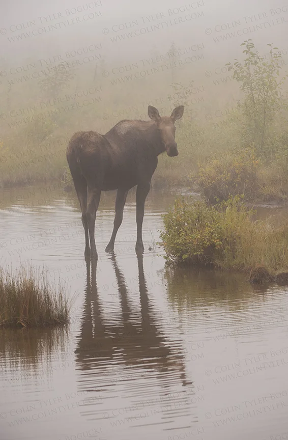 Another misty morning moose. Temperatures are dropping overnight and light is fading quickly. While I don't want to see summer draw to a close, I enjoy autumn and the seasonal changes that come with it, like morning fog in the valley.