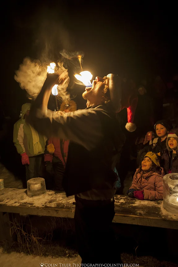 It is said that if you play with fire, you're going to get burned. Somehow, this crew seems to avoid injury and make rule breaking into entertainment. Here are a few more photos from Saturday evening at the Eagle River Nature Center's annual Winter Solstice Ice Lantern Walk. Many thanks and much respect to the AK Fire Circus, who kept the crowd entranced once again with a very artistic performance and a bit of fire eating to boot!