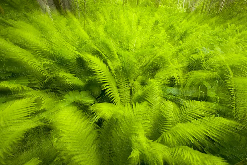 I took this photo around this time last year on a windy, overcast day that was mostly uninspiring. Often times, I find myself prejudging what photo ops might present themselves based on the weather conditions rather than seeking out something new and innovative. It's easy to get stuck in this rut and dismiss potential opportunities based on the quality of light, but when you take a closer look at the forest and make some adjustments, the results can be rewarding. When I noticed the movement in the ferns blowing in the wind, I was suddenly inspired to try and capture that energy in a photograph. Using a slow shutter and zooming in during the exposure exaggerated the movement while bouncing a flash at the end added a bit of definition to the plants.