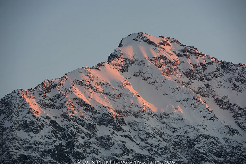 Until very recently, the sun had not shone on these slopes since sometime in mid-autumn. Even if the negative temperatures don’t signal change, spring truly is in the air. Since December 21 of last year, the amount of daylight has literally doubled and we are gaining in leaps and bounds from now until summer, when the pendulum of light will begin to swing the other way again. With the cold, clear skies we’ve had, the evening light on Eagle Peak and surrounding mountains has been pristine.