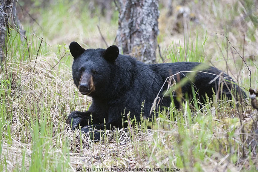 I've been seeing a lot of black bears recently, which is typical for this time of year. This is a medium-sized sow that was being followed closely by a very large boar, probably looking to mate with her. Shortly after I took this, they were both charged by a cow moose with twin calves.