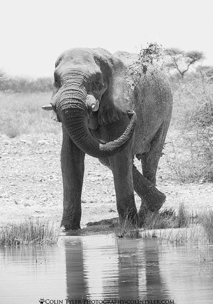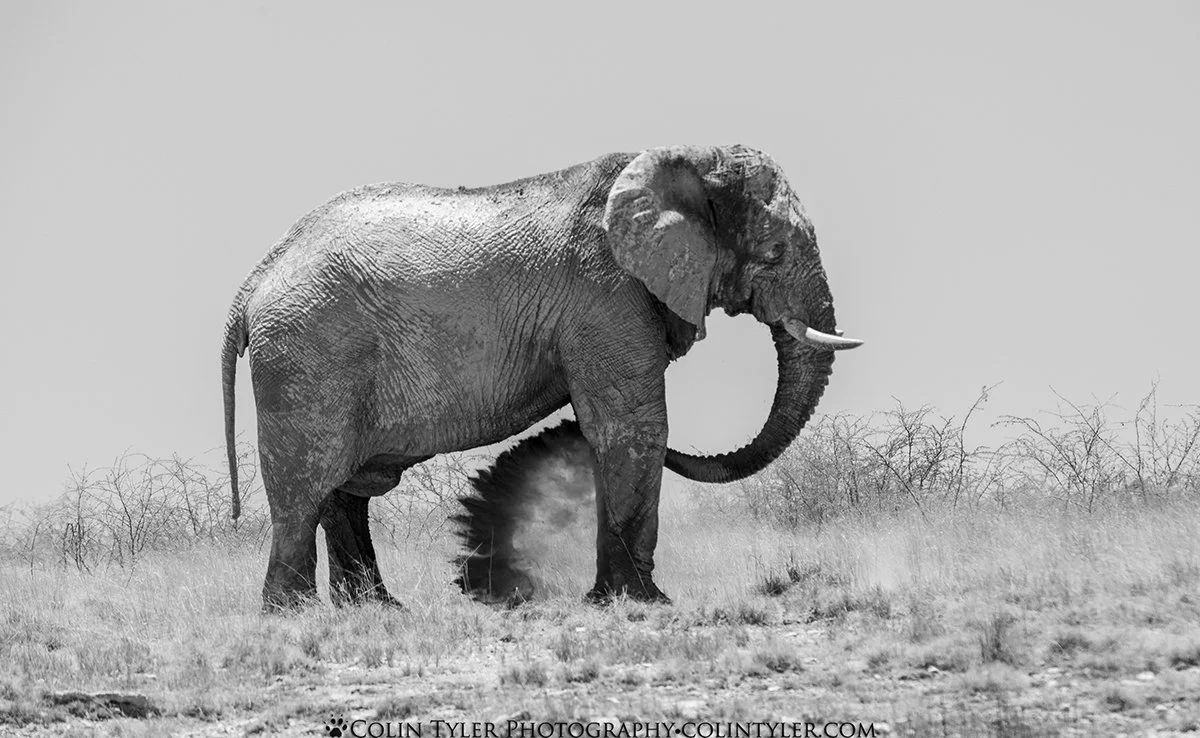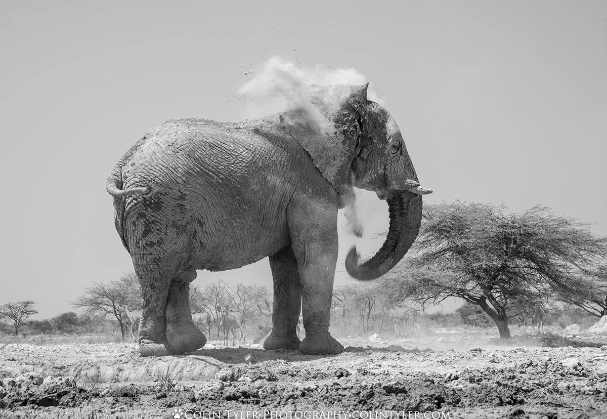 Elephants throw mud across their bodies to protect their skin from the harsh African sun and use dust to cool themselves. Capturing this behavior and using different shutter speeds for various effects has become one of my favorite aspects of our annual tour of Southern Africa.