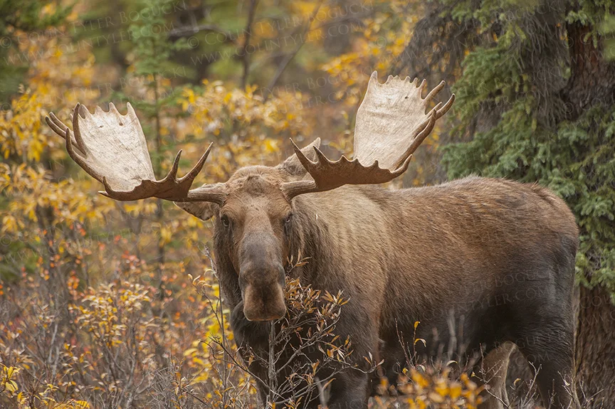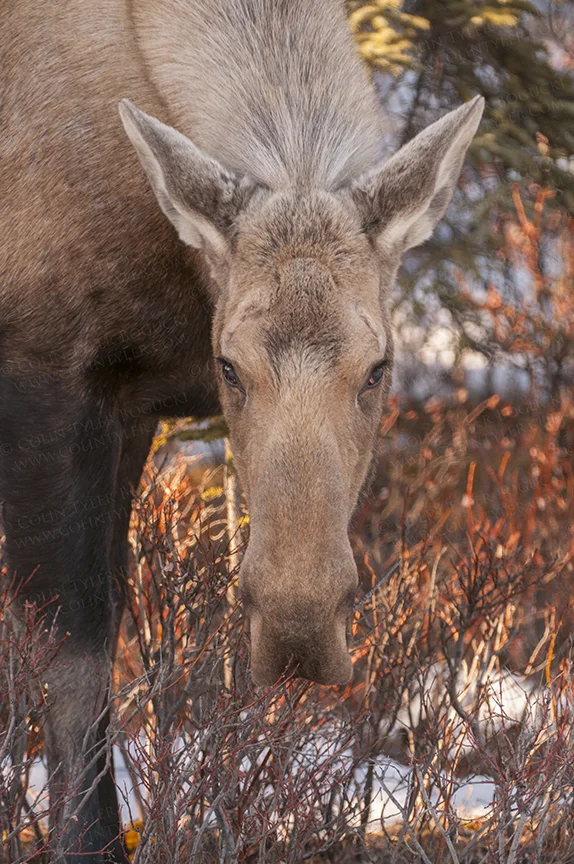 Yesterday was a beautiful day for a road trip to Fairbanks, so I had to make a detour into Denali National Park on the way, where I came upon this antler-less bull moose browsing. He should be growing a new set of antlers anytime now.