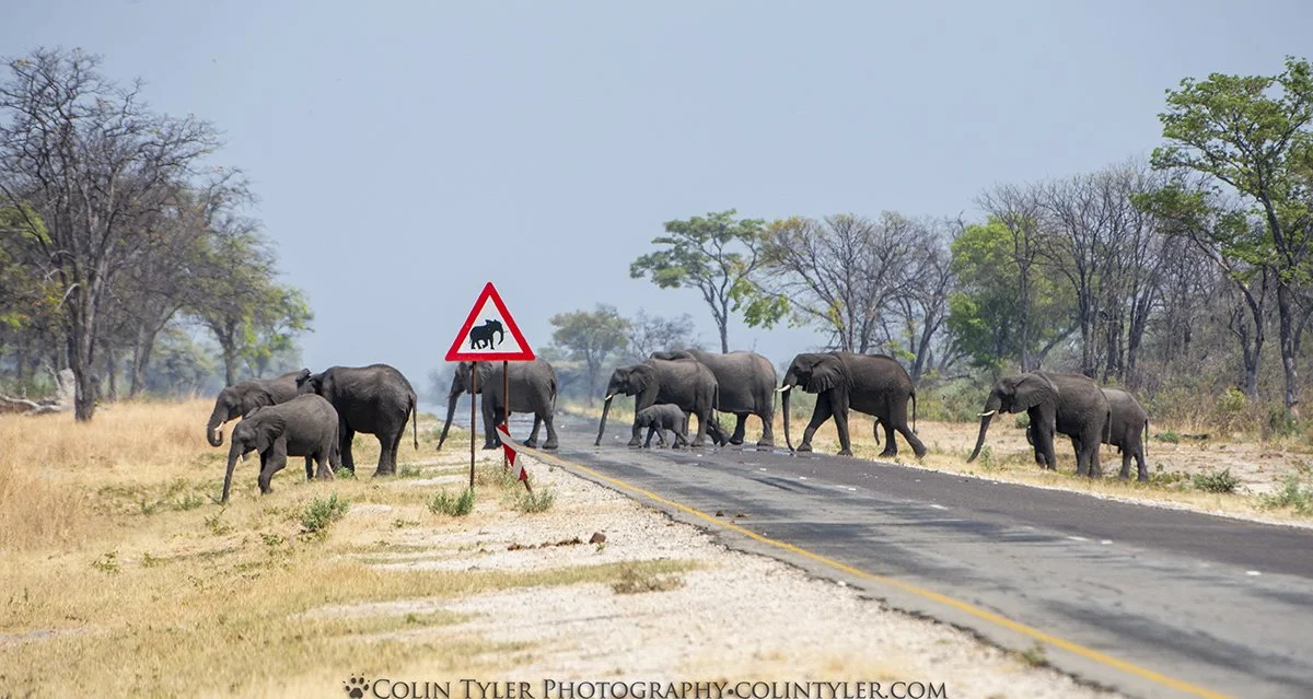 This image was taken the same day that we drove through an elephant herd in the Kwando Core Area of Northeastern Namibia (see the video in my previous post). This herd numbered around 100 and crossed a road literally right behind an elephant crossing sign!