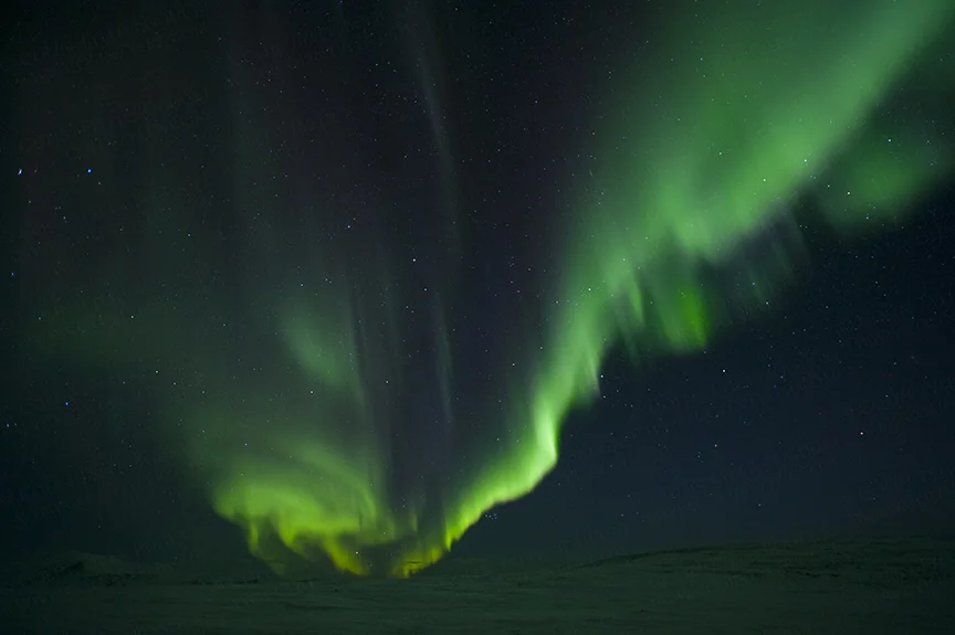 There is nothing quite like witnessing the aurora borealis under crystal clear skies near the Arctic Circle, where the stars are big and bright. Here's one of my favorites from last Tuesday night/Wednesday morning at Eagle Summit, Alaska. There was no light pollution whatsoever, and not one vehicle passed by while we were out there.