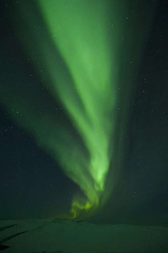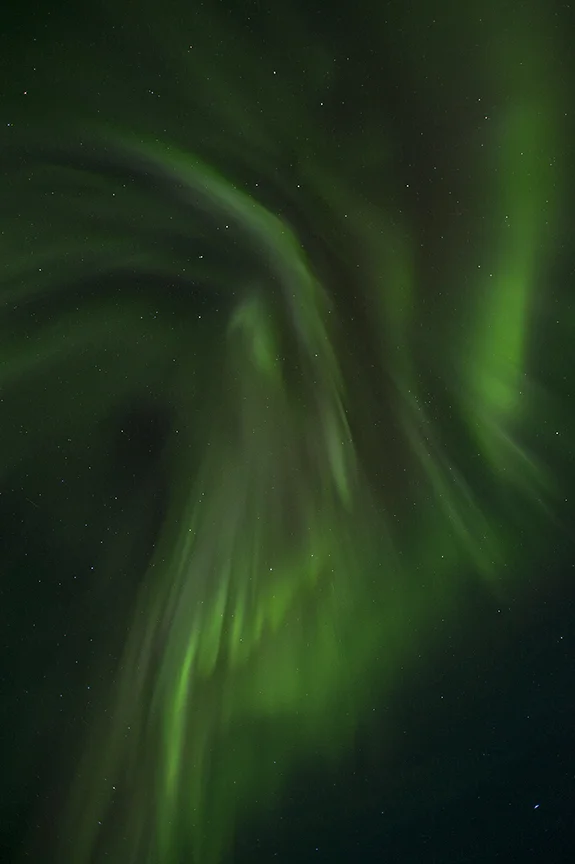 Looking skyward into the aurora, it's interesting to see what patterns emerge as the electricity morphs into different shapes and colors.