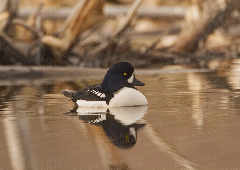 Apparently the Barrow's goldeneyes have not left the vicinity of the Eagle River Nature Center, as I had previously reported. I went out this morning hoping to photograph a bear and instead happened upon this little guy. He was a bit skittish at first and swam away but I was able to quietly inch my way closer and get down on my belly for an eye-level view, all the while looking back over my shoulder in case the bear should show up while I was sprawled out.