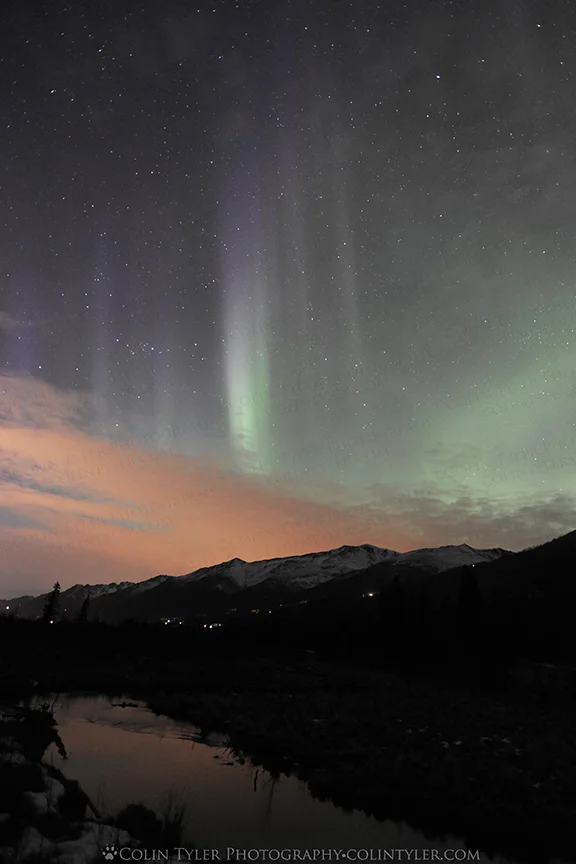 The clouds parted just long enough last night to witness a nice little light show around midnight, as the aurora-viewing season is quickly drawing to a close.