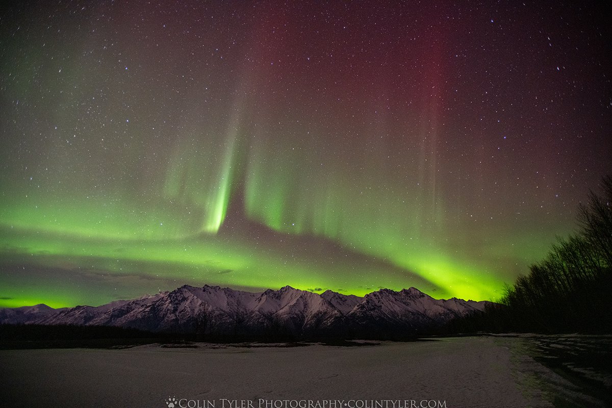 Early morning aurora over Dillon Mountain, Brooks Range, Alaska, March 31, 2022.