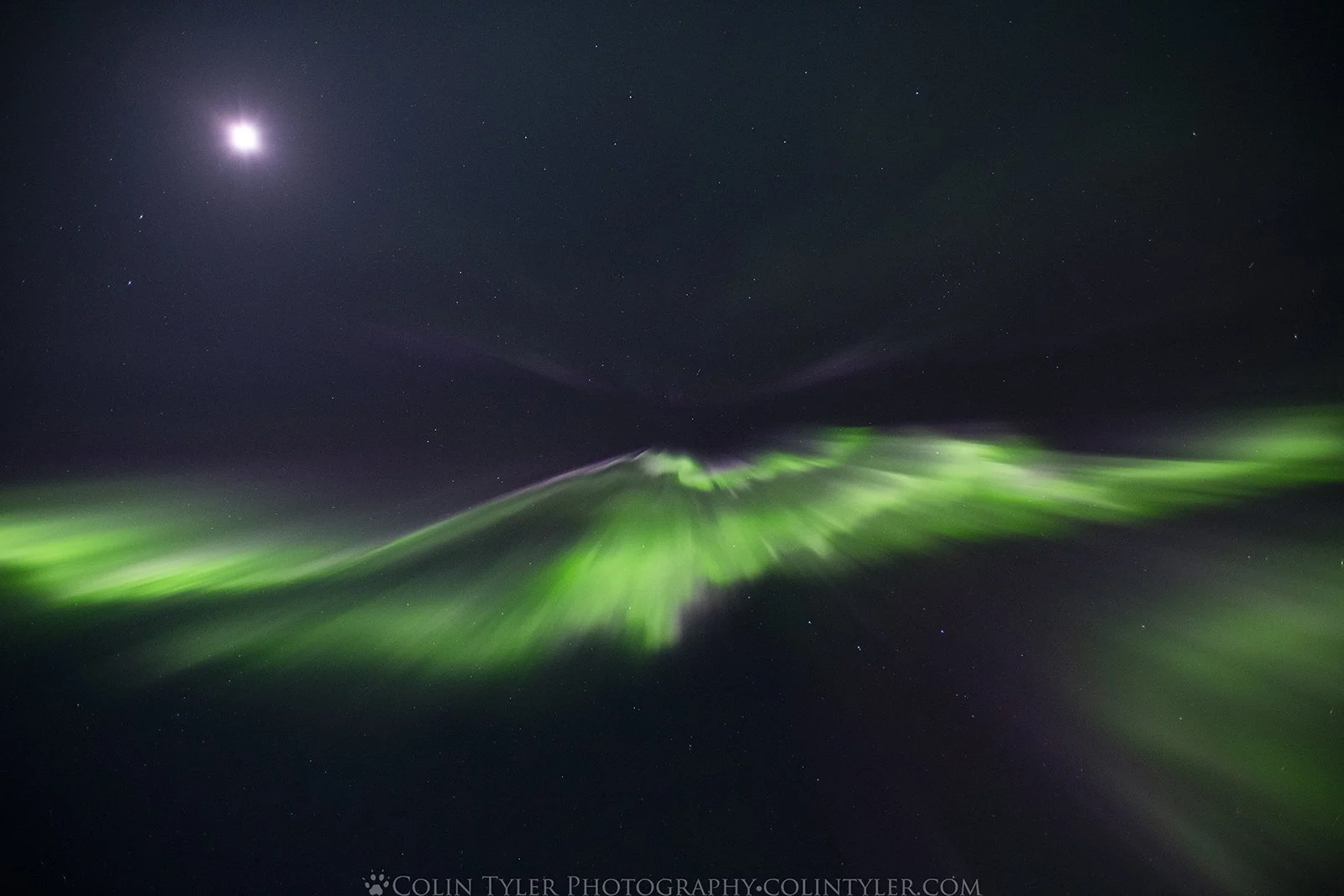 Auroral corona & moon at the Eagle River Nature Center, Alaska