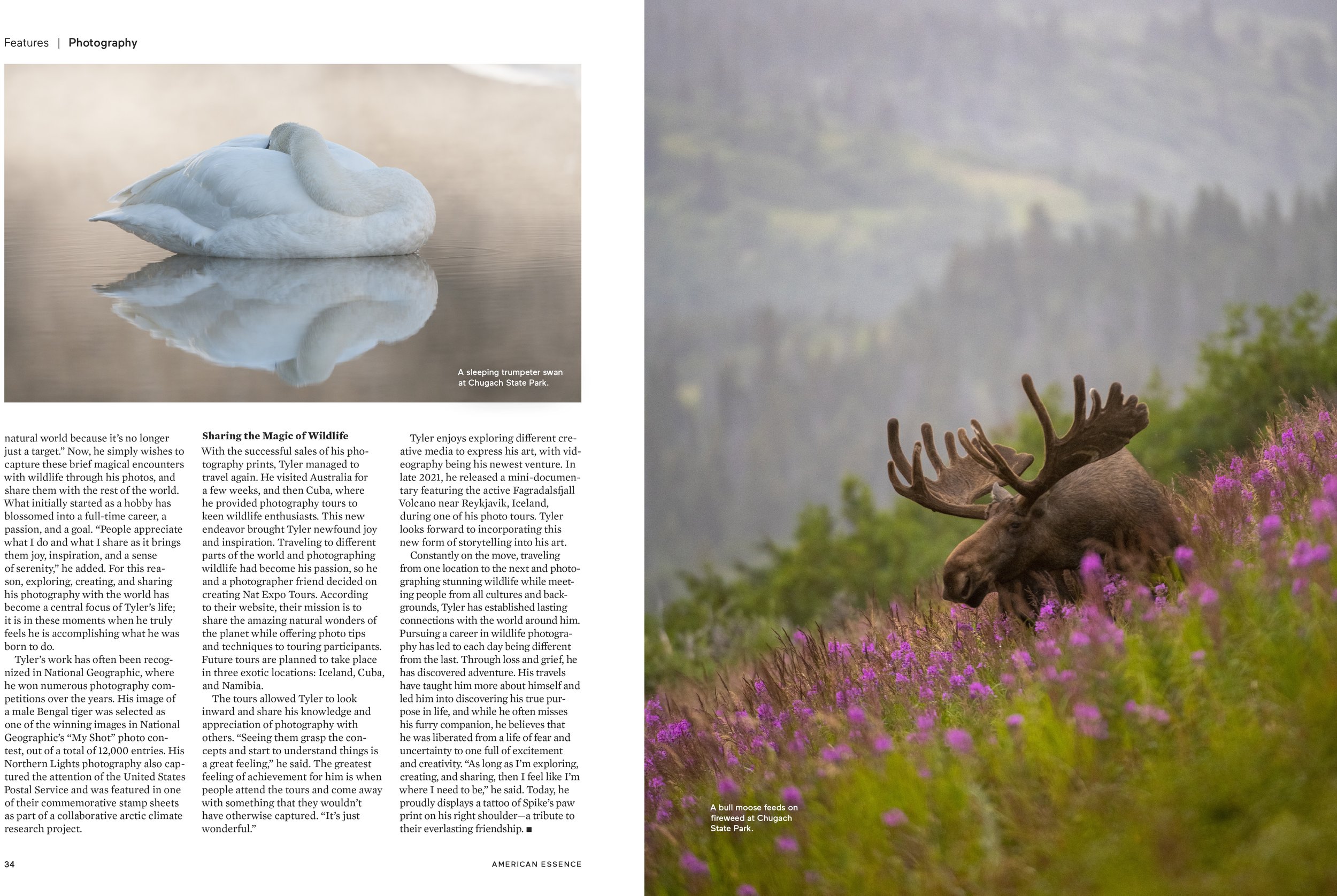 In late 2021 I was contacted by a staff writer with American Essence Magazine to create a feature article about my photography and the life events that led to where I am today. The writer, Skylar Parker, did a wonderful job of accurately portraying my story and I was honored to have been chosen for this piece. The essay was published in January, 2022. You can view the PDF’s here or link to the article on their website: https://www.americanessence.com/from-ashes-to-beauty_2166.html