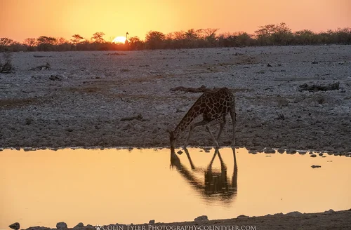 Giraffes at sunset, Okaukeujo Waterhole, Etosha National Park, Namibia
